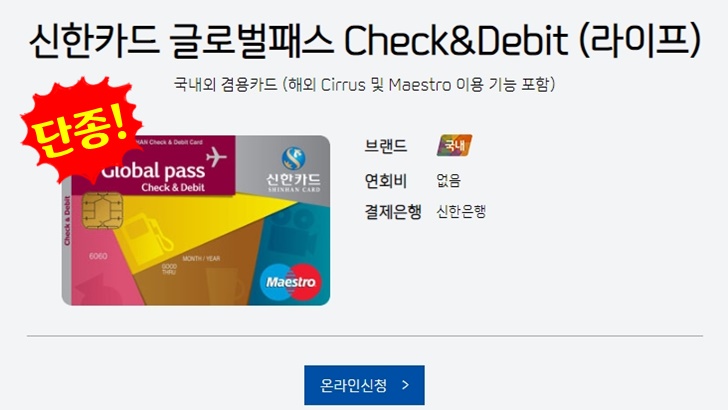 2019년 12월 31일자로 단종된 글로벌패스 Check&Debit 카드가 아직 발급 가능하다는 소식입니다. ^^