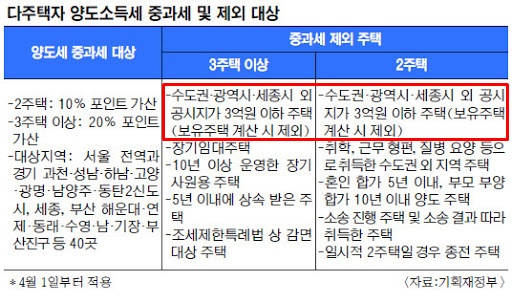 (아래 기재부의 양도세 중과 제외 규정을 참고)