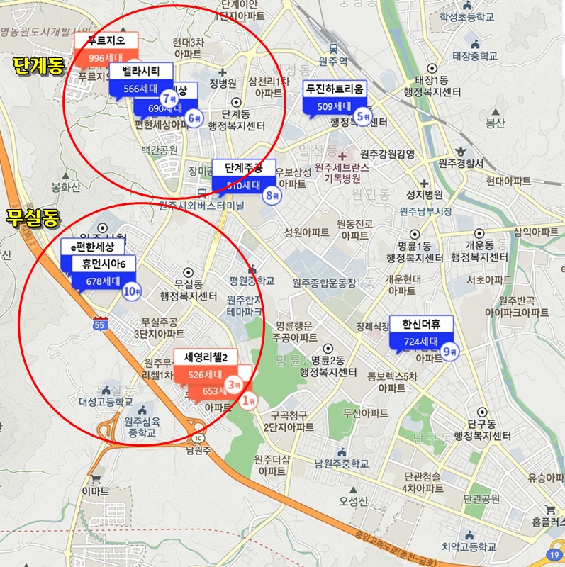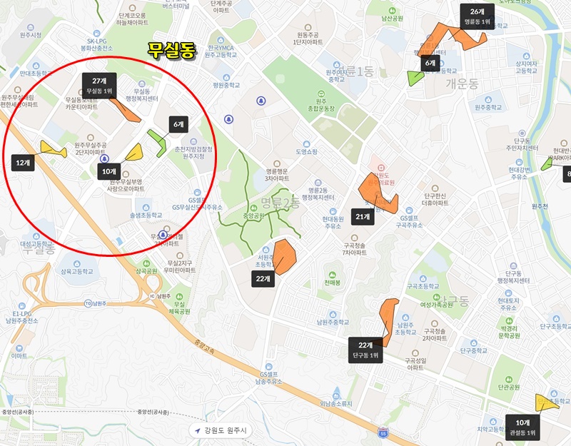 이렇게 원주를 둘러보니 무실동이 좋아보입니다.(제 개인적인 취향)